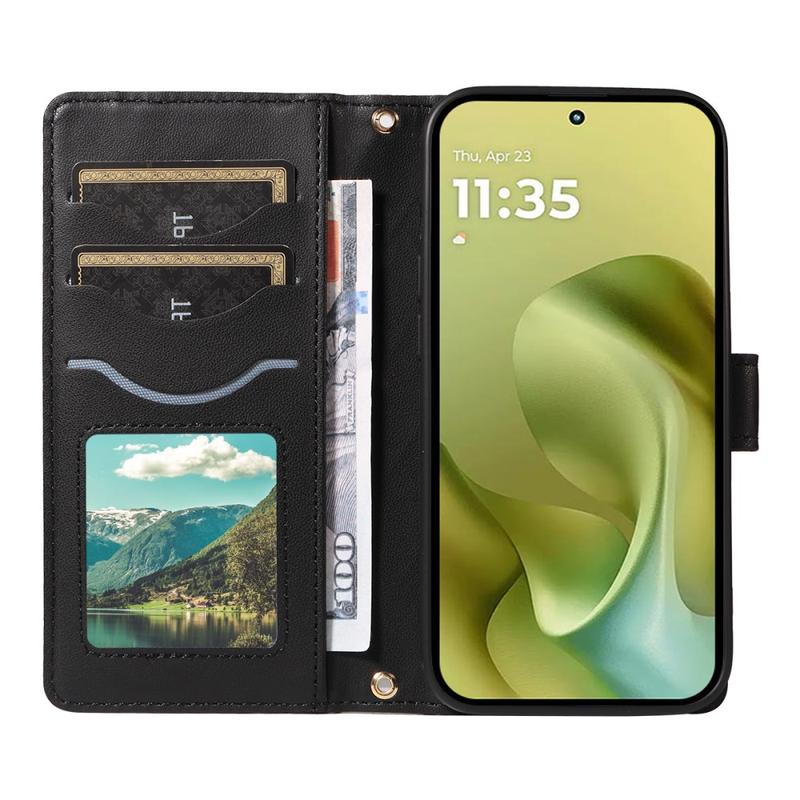 Schützen Sie Ihr Motorola Moto G86 mit dieser luxuriösen gesteppten Brieftaschenhülle. Hergestellt aus TPU-Material mit PU-Leder beschichtet, ist diese Hülle kratzfest und Anti-Fingerabdruck, so dass Ihr Telefon stilvoll und elegant aussieht. Die Stepplinie bildet ein Rautenmuster, das der Hülle einen modischen und schönen Touch verleiht. Der erhöhte Rand der Kamera und des Bildschirms bietet effektiven Schutz vor Kratzern, während die präzisen Aussparungen vollen Zugang zu allen Tasten, Anschlüssen und anderen Funktionen bieten. Das Brieftaschendesign ermöglicht die einfache Aufbewahrung von wichtigen Karten und Bargeld, und die mitgelieferten Saugnäpfe können als Ständer für die freihändige Nutzung verwendet werden. Die Tasche bietet zusätzlichen Schutz vor Kratzern, Stößen, Stürzen und alltäglichen Beschädigungen und wird mit einem Schulter- und einem Handgelenkriemen geliefert, die für zusätzlichen Komfort sorgen.