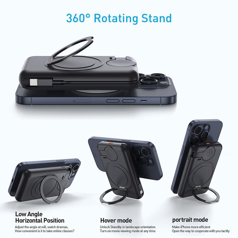 Es zeichnet sich außerdem dadurch aus, dass es Tragbarkeit mit erstklassiger Praktikabilität verbindet. Die magnetische Ladefunktion erleichtert das Aufstellen des Telefons, das integrierte Kabel sorgt für Ordnung und der drehbare Ständer bietet ein Maß an Benutzerfreundlichkeit, das viele gewöhnliche Powerbanks nicht bieten. Für Nutzer, die eine vielseitigere und ausgefeiltere tragbare Ladelösung suchen, ist dies eine sehr gute Wahl.