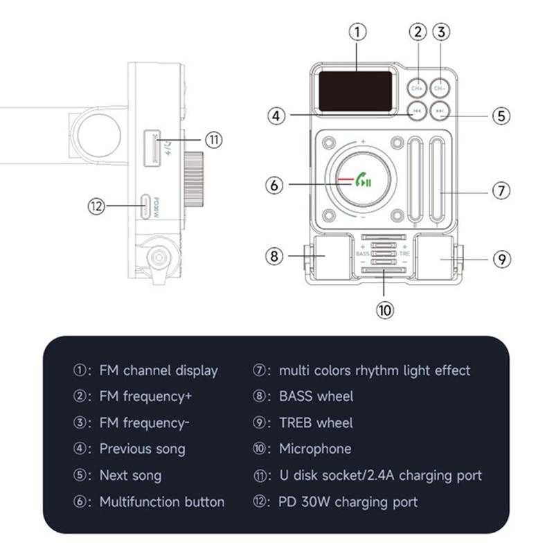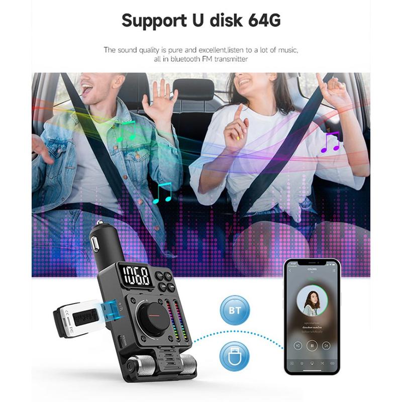 • MT01 Ambient Light Car Bluetooth Adapter FM Transmitter MP3 Music Player Typ-C + USB Autoladegerät