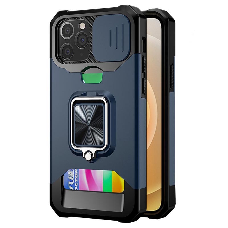 • Multifunktions 4-in-1 Hybrid Hülle für iPhone 12, iPhone 12 Pro mit Kartensteckplatz, Magnetische Ring, Ständer, Kamera Schutz