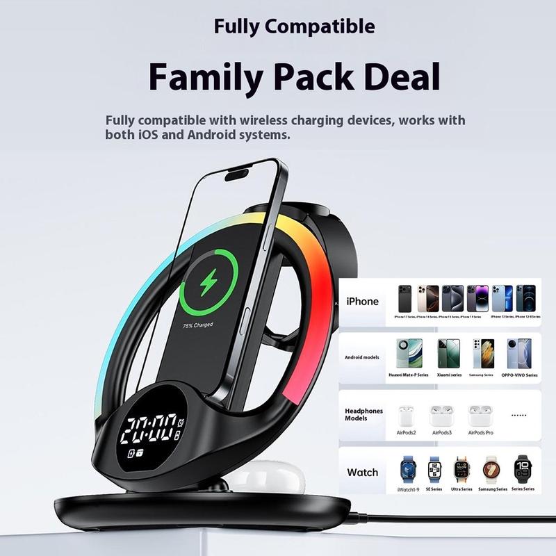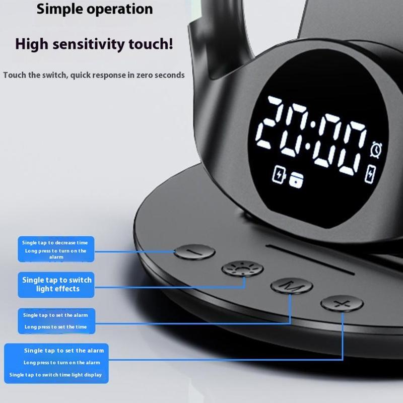 N01 6-in-1 kabellose Ladestation / magnetische Schnellladestation mit Wecker, intelligenter Temperaturregelung und Nachtlicht