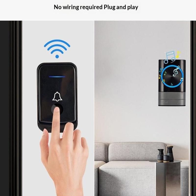 N189 Wasserdichte kabellose Türklingel - EU-Stecker, 200m Reichweite, 52 Melodien - Schwarz