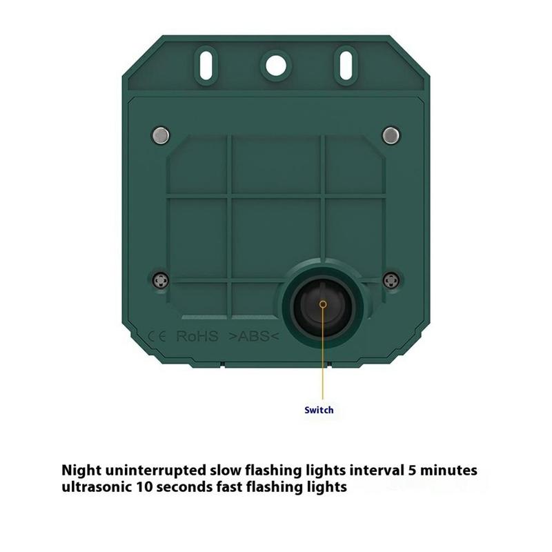 - Funktion: Langsames Dauerblinklicht in der Nacht + 10 Sekunden schnelles Blinklicht mit 5-Minuten-Ultraschall-Intervallen
