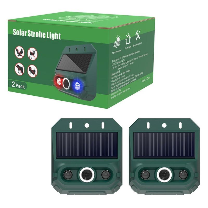 N911Z Solarbetriebenes Ultraschall-Vogelabwehrgerät mit LED-Blitzlicht und Bewegungssensor-Alarm - 2 Stk.