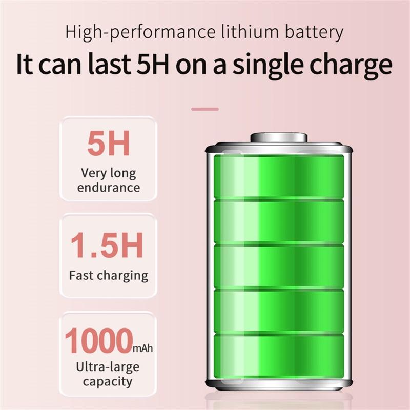 - Lange Akkulaufzeit - Der 1000-mAh-Akku bietet bis zu 5 Stunden Dauerbetrieb mit einer einzigen 1,5-stündigen Ladung über die Typ-C-Schnittstelle.