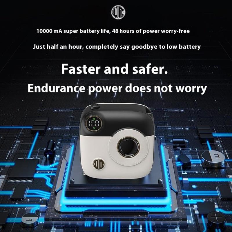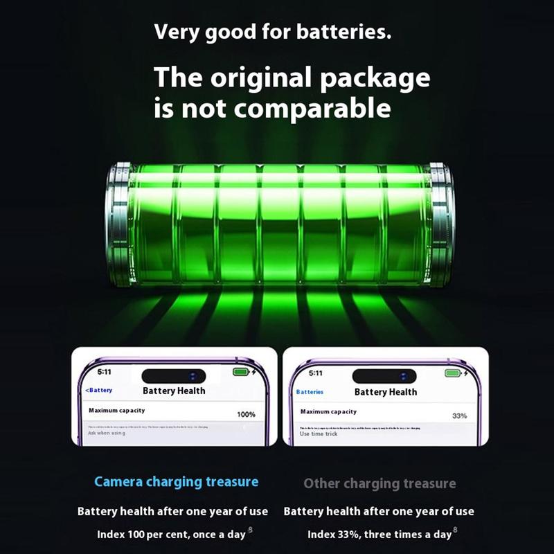 - Einzigartiges Design: Das kameraförmige Design hebt es von Standard-Powerbanks ab.