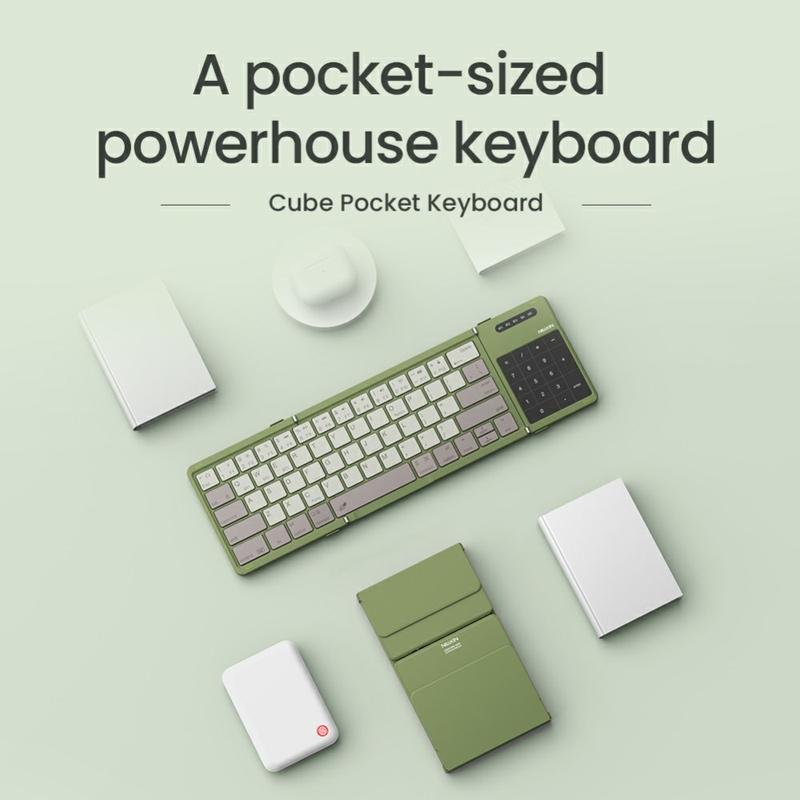 Arbeiten Sie überall mit der faltbaren Nillkin Cube Pocket Bluetooth-Tastatur, einer kompakten und tragbaren Lösung zum Tippen, die maximalen Komfort bietet. Sie wiegt nur 0,226 kg, lässt sich auf Taschenformat zusammenfalten und wird zu einer Tastatur in voller Größe mit einem 3,4-Zoll-Touchpad für reibungslose Navigation. Ganz gleich, ob Sie ein iPad, ein Android-Tablet, einen Windows-Laptop oder sogar ein Smartphone verwenden, diese Tastatur gewährleistet nahtlose Konnektivität, eine lange Akkulaufzeit und ein komfortables Tipperlebnis - perfekt für Reisen, Arbeit und Studium.