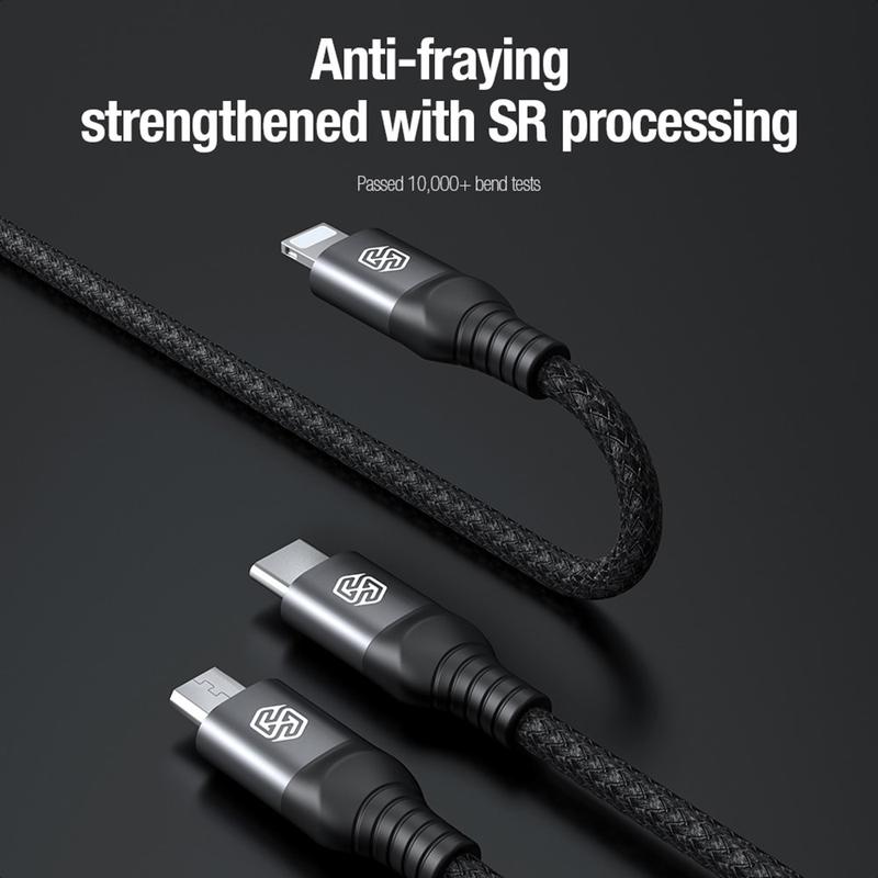 NILLKIN Swift Pro 3-in-1 Kabel Nylon geflochten USB zu Typ-C / iP / Micro Ladekabel - Blau