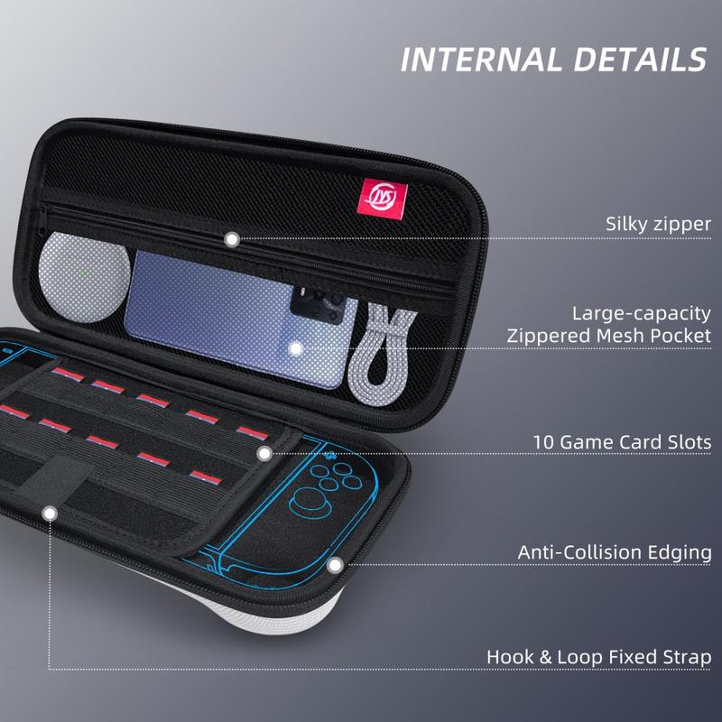 Weiche Taschen können Zubehörteile zerdrücken und mit dem Bildschirm vermischen. Das JYS-Design mit zwei Fächern behebt beide Probleme: Eine starre EVA-Außenseite widersteht Druck, während separate Abschnitte verhindern, dass Kabel oder Adapter an der Konsole reiben. Zehn Kartenfächer sorgen dafür, dass Sie Ihre Top-Titel mitnehmen können - es sind keine zusätzlichen Taschen erforderlich.