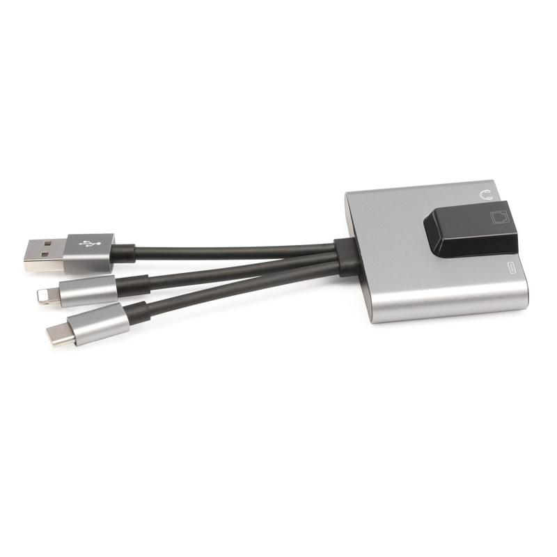 Da immer mehr Geräte auf Kopfhörer- und Ethernet-Anschlüsse verzichten, sind 3-in-1-Adapter wie der NK-1056S unverzichtbar geworden. Mit integrierter Unterstützung sowohl für iOS- als auch für USB-basierte Systeme ist er einer der wenigen Adapter, der Daten, Strom und Ton gleichzeitig verarbeitet, ohne dass eine App oder eine Installation erforderlich ist.