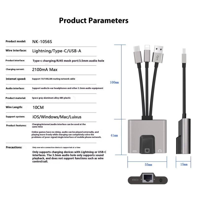 Bleiben Sie mit dem NK-1056S 3-in-1-Ethernet-Adapter, der Ihr digitales Leben vereinfacht, verbunden und mit Strom versorgt. Dieser kompakte Adapter unterstützt USB-C-, USB-A- und Lightning-Schnittstellen - ideal für die Verwendung mit Windows-Laptops, macOS-Geräten, iPhones, iPads und mehr. Ganz gleich, ob Sie aus der Ferne arbeiten, online spielen oder an virtuellen Meetings teilnehmen, dieser multifunktionale Adapter ist für Sie da.