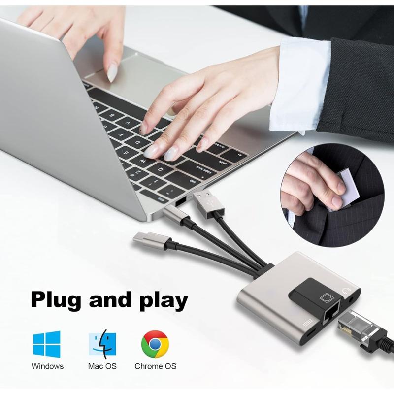 Dieser Adapter löst mehrere Probleme in einem: kein Ethernet? Keine Buchse? Kein Problem. Egal, ob du das neueste iPad, einen USB-C-Laptop oder dein iPhone verwendest, mit diesem Gerät bist du immer verbunden, geladen und hörbar. Er ist kompakt und treiberlos und eignet sich ideal für Profis, Gamer, Studenten und Streamer.