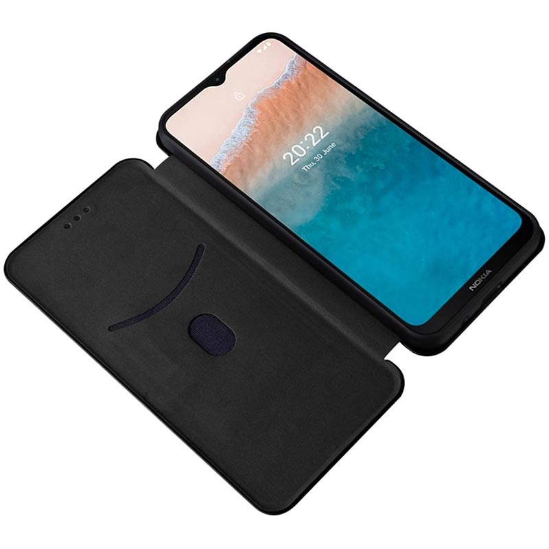 Nokia C21 Plus Flip Hülle - Karbonfaser - Schwarz