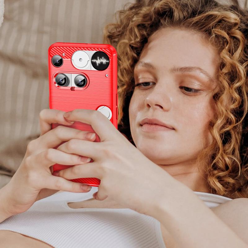 Nothing Phone (3) Gebürstete TPU Hülle - Karbonfaser - rot