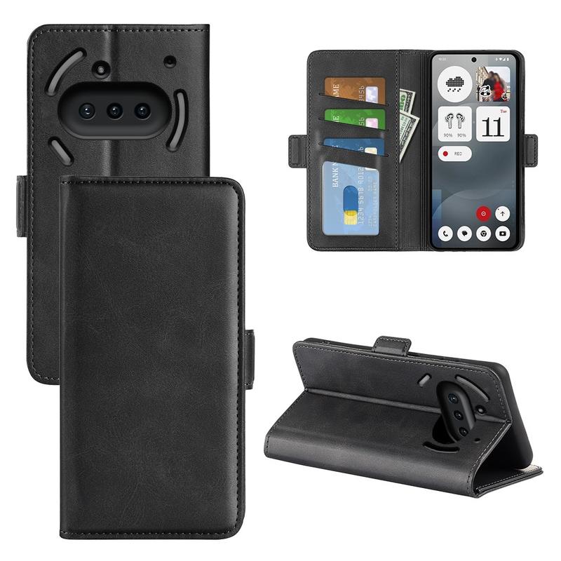 Nothing Phone (3a) Wallet Hülle mit Magnetverschluss - Kalb Textur - Schwarz