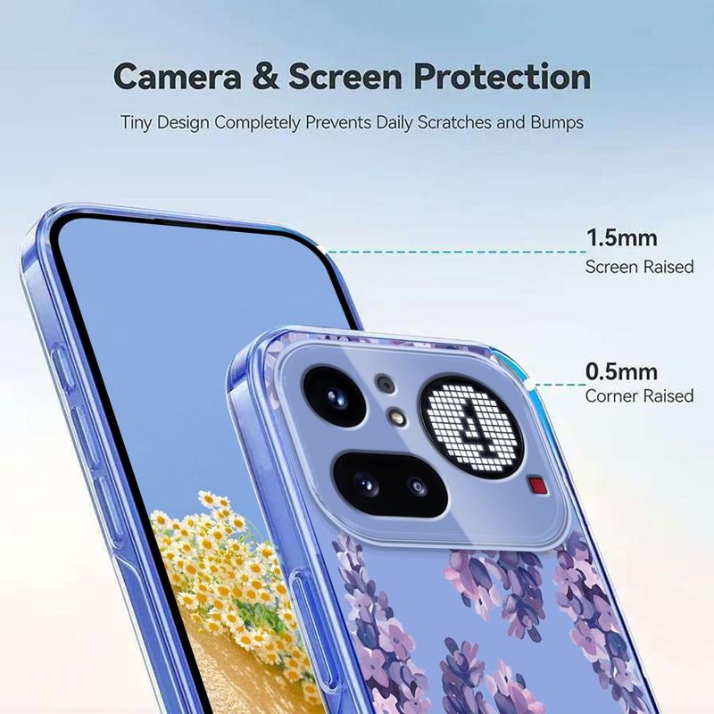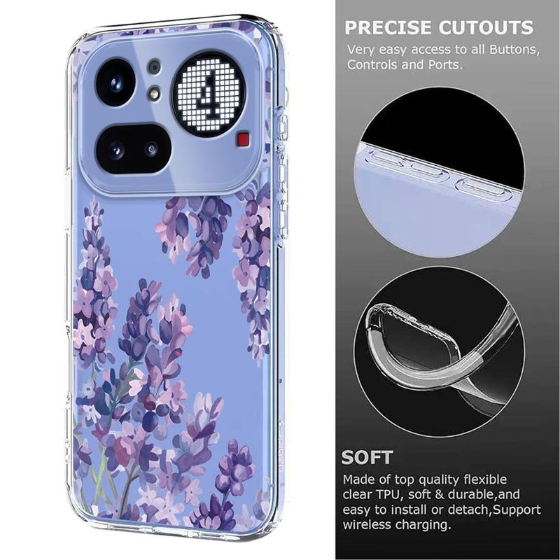 Verwandeln Sie Ihr Nothing Phone (4a) Pro in ein tragbares Kunstwerk. Die Floral-Edition umgibt Ihr Telefon mit einem verträumten Lavendelblütenmuster und zarten Schmetterlingen, gedruckt mit hochauflösenden Farben, die nicht verblassen. Die aus flexiblem, stoßdämpfendem TPU gefertigte Hülle schmiegt sich an jede Rundung Ihres Geräts an, während erhöhte Lippen das Display und die Kameralinsen vor täglichen Stößen schützen. Eine matte, schmutzabweisende Beschichtung sorgt für ein gestochen scharfes Design und verhindert Fingerabdrücke auf dem Telefon, ohne das drahtlose Qi-Laden zu behindern.