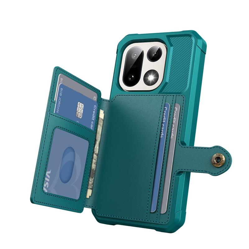 - Die Brieftaschenhülle für das OnePlus 15 verfügt über einen sicheren Druckknopfverschluss, ein Brieftaschendesign und mehrere Kartenfächer mit einer Geldtasche