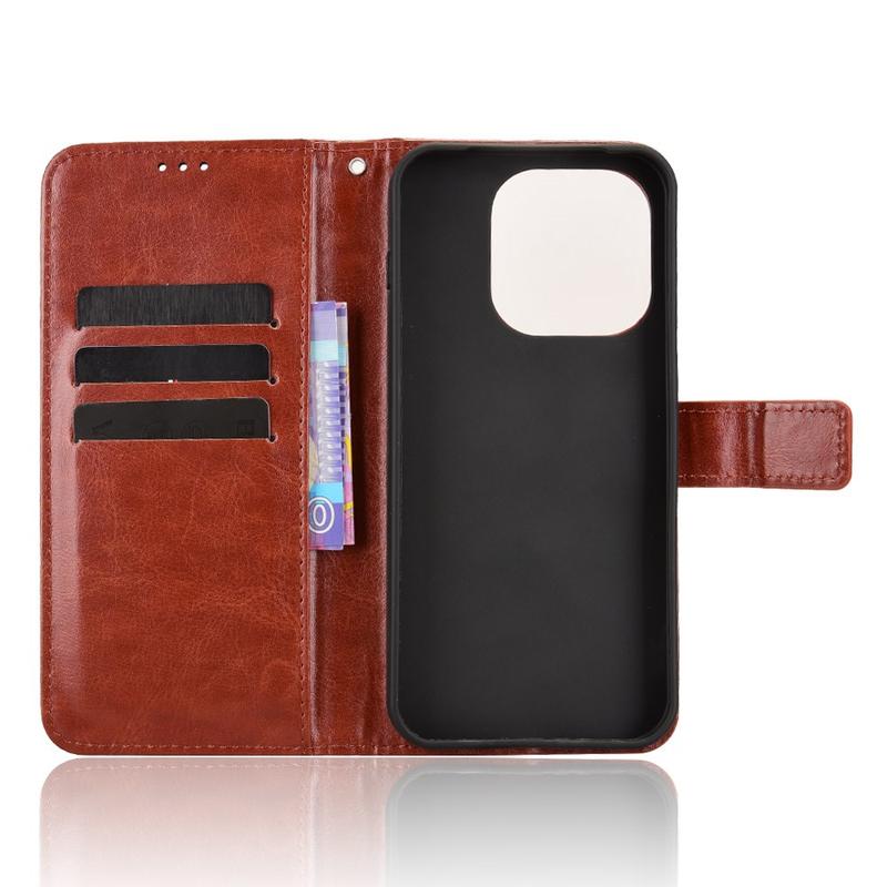 Der Name "Crazy Horse" stammt aus der traditionellen Pferdesattlerei; die strukturierte Oberfläche wird mit Wachsen behandelt, die einen zweifarbigen Pull-up-Effekt erzeugen, der vollnarbiges Leder imitiert, dabei aber tierfreundlich, leichter und kratzfester ist. Das macht es ideal für Telefonzubehör für den täglichen Gebrauch, bei dem sowohl Haltbarkeit als auch Stil wichtig sind.