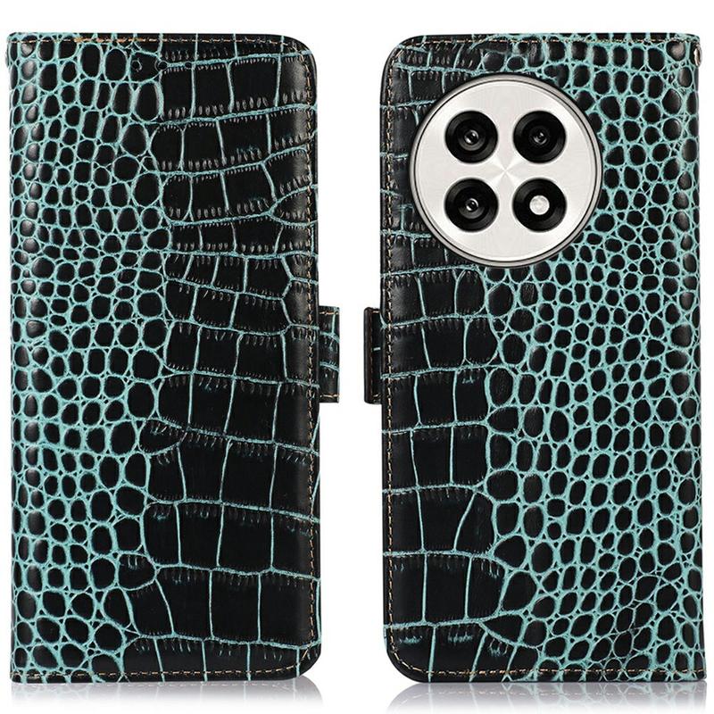 • Crocodile Serie Lederhülle mit Geldbörse mit RFID für OnePlus Ace 5, Ace 5 Pro, OnePlus 13R