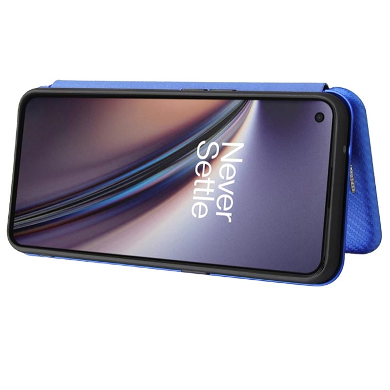 Bewahren Sie Ihr OnePlus Nord CE 5G in diesem Flip-Case mit Kohlefaser-Textur auf Nummer sicher auf.