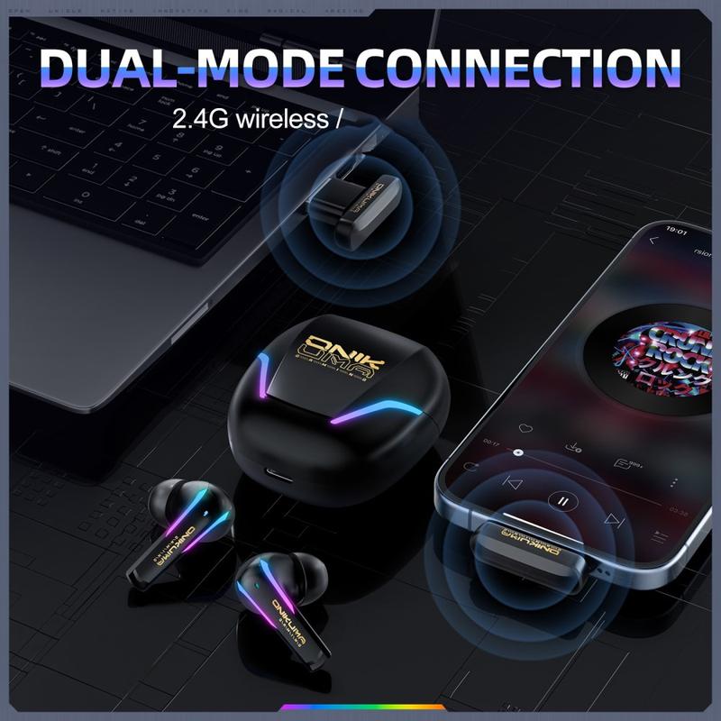 Verbessern Sie Ihr Gaming-Erlebnis und Ihren täglichen Musikgenuss mit den ONIKUMA T27 True Wireless-Ohrhörern. Sie wurden für Spieler entwickelt, die eine schnellere Reaktion und flexible Konnektivität wünschen, und unterstützen sowohl 2,4-GHz-Funk als auch Bluetooth 5.3. Damit bieten sie Ihnen eine Einrichtung mit geringer Latenz für Spiele und eine praktische drahtlose Option für Musik, Anrufe und den täglichen Gebrauch. Die ergonomische Form ist für längere Sitzungen ausgelegt und sorgt dafür, dass die Ohrhörer bequem sitzen, egal ob Sie zu Hause spielen, pendeln oder trainieren.
