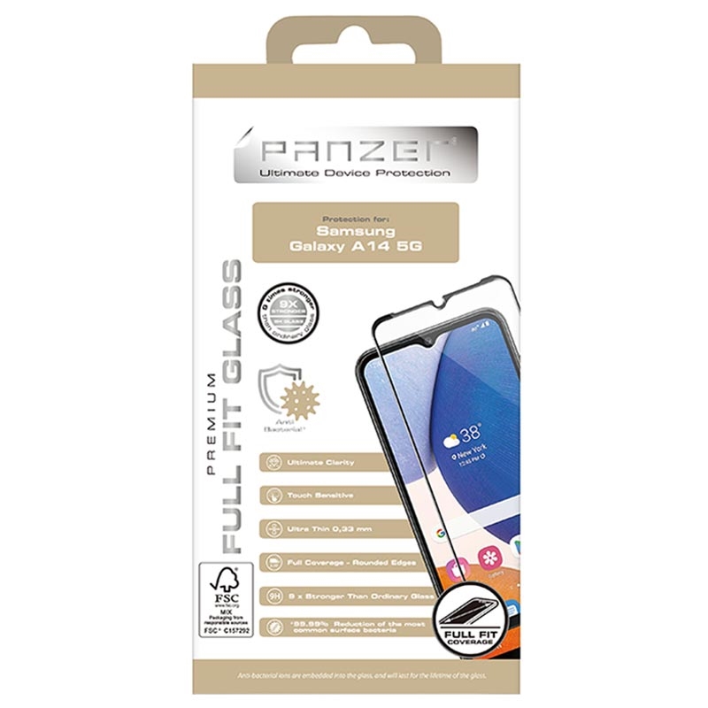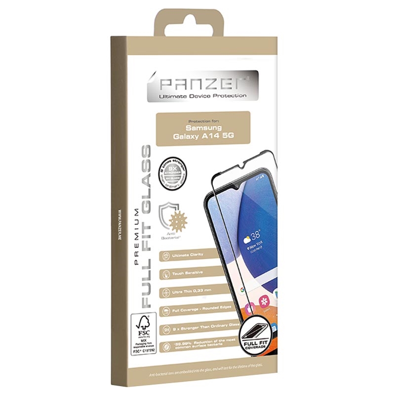 Panzer Premium Full Fit Displayschutz aus gehärtetem Glas für Samsung Galaxy A14