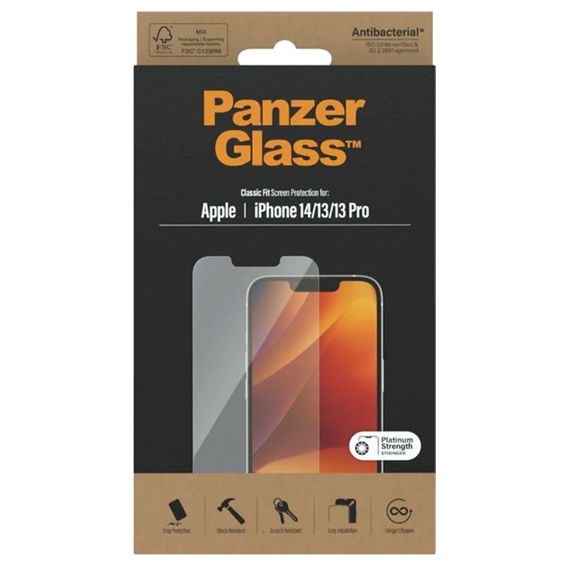 PanzerGlass Classic Fit AntiBacterial Panzerglas für iPhone 13, iPhone 13 Pro, iPhone 14