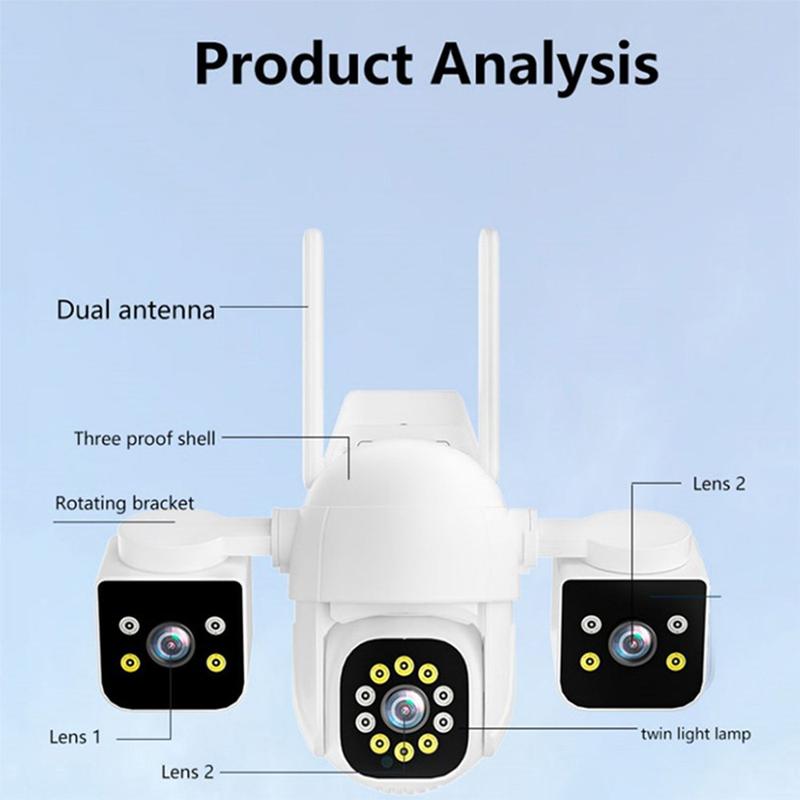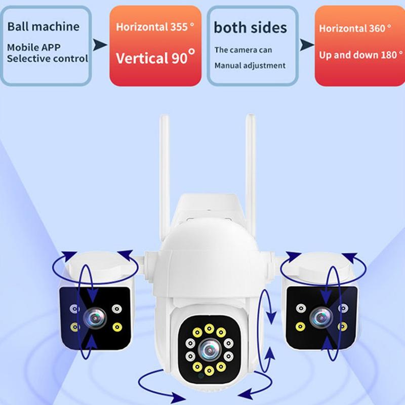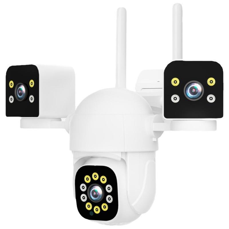 • PC288-B3Y10-2MP wasserdichte Überwachungskamera mit drei Objektiven, PTZ mit Panoramadrehung, Nachtsicht, 64GB Speicherkarte, WiFi - EU-Stecker