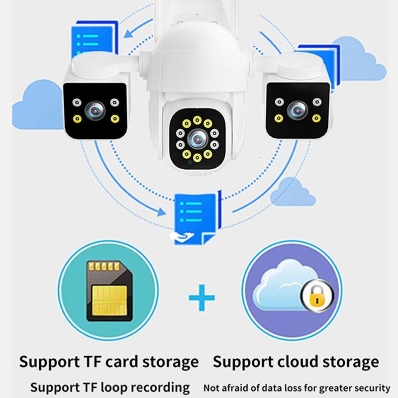 PC288-B3Y10-2MP Triple-Lens WiFi Überwachungskamera PTZ mit 64GB Speicherkarte