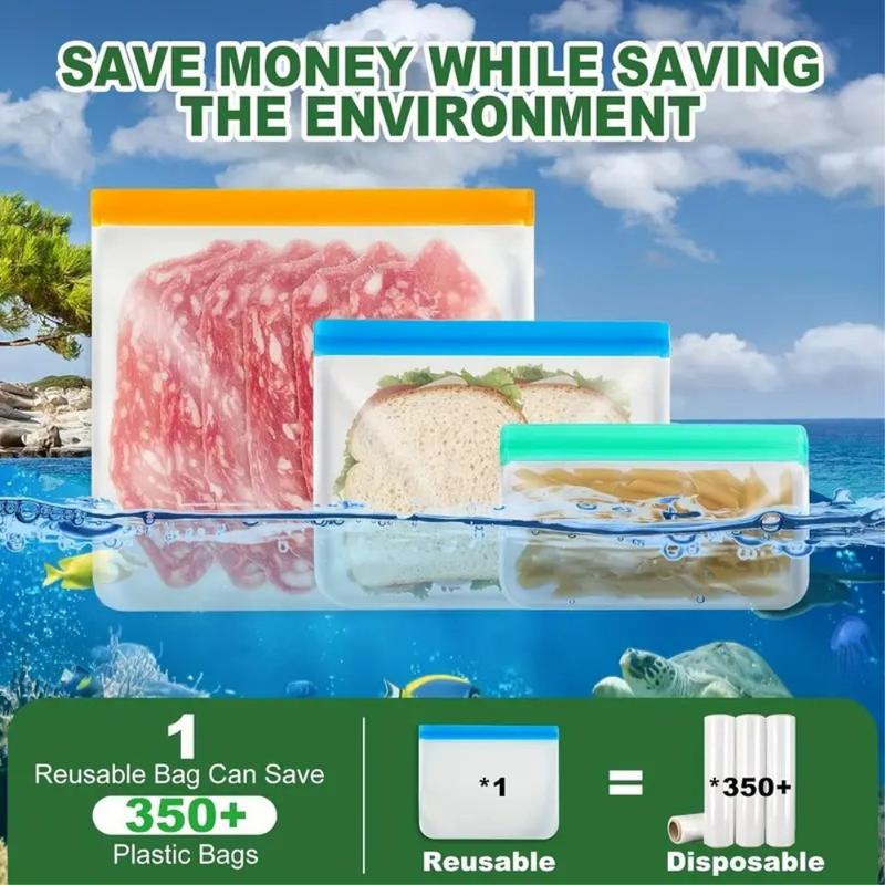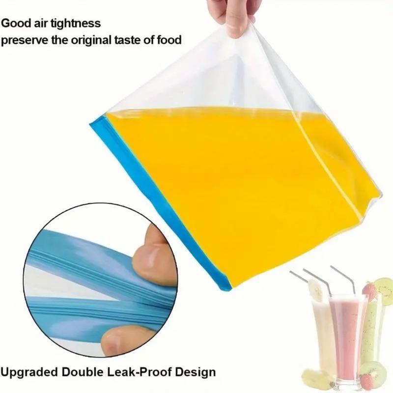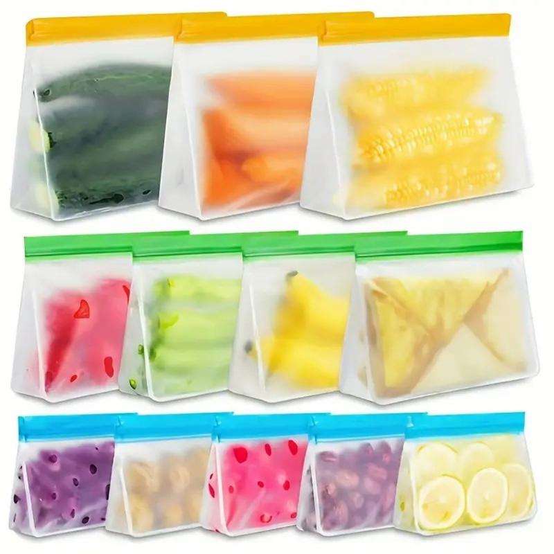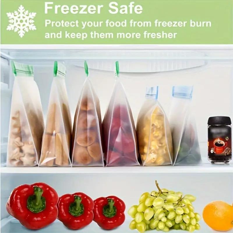 - Set mit 10 wiederverwendbaren PEVA-Aufbewahrungsbeuteln in den Größen S/M/L.