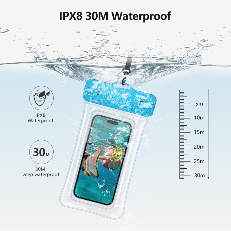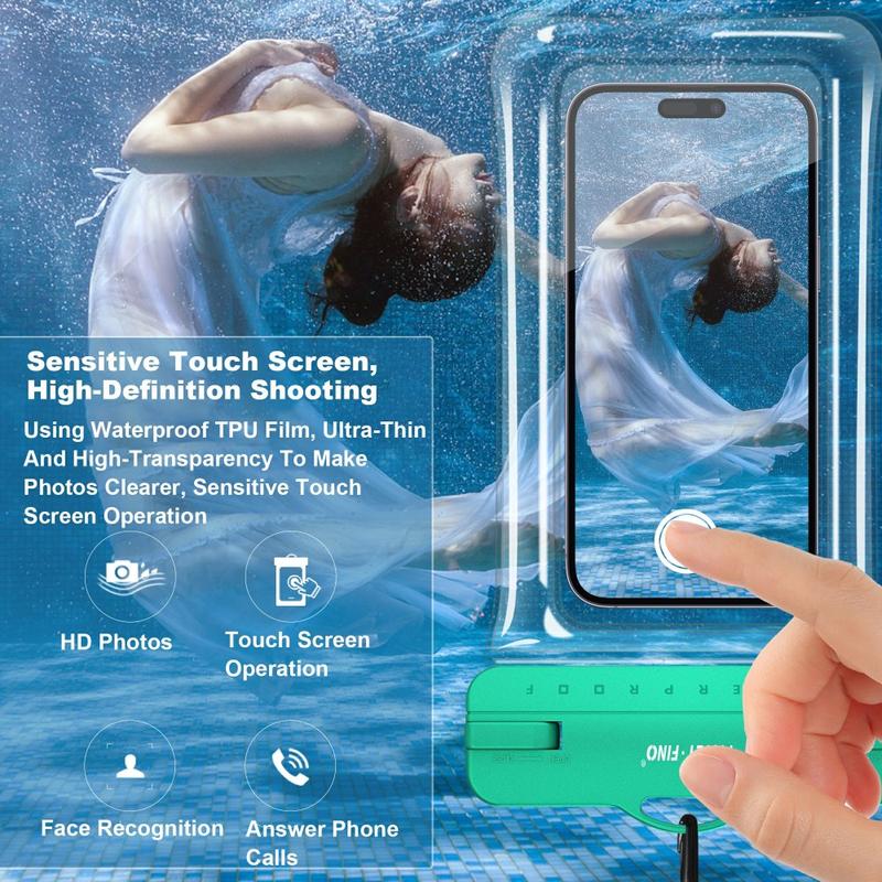 Der Körperteil ist aus hochwertigem weichem TPU-Material, ermöglicht Touchscreen-Funktion voll verfügbar, in der Lage, Fotos mit Kamera unter Wasser zu nehmen. Hoch wasserdicht IPX8 wasserdicht Grad, geeignet für alle Arten von Outdoor-Aktivitäten: Bootfahren, Angeln, Segeln, Kanufahren, Wasser-Themen-Park, Camping, Bergsteigen, Off-Shore-Arbeit, Regentage Outdoor-Arbeit etc.