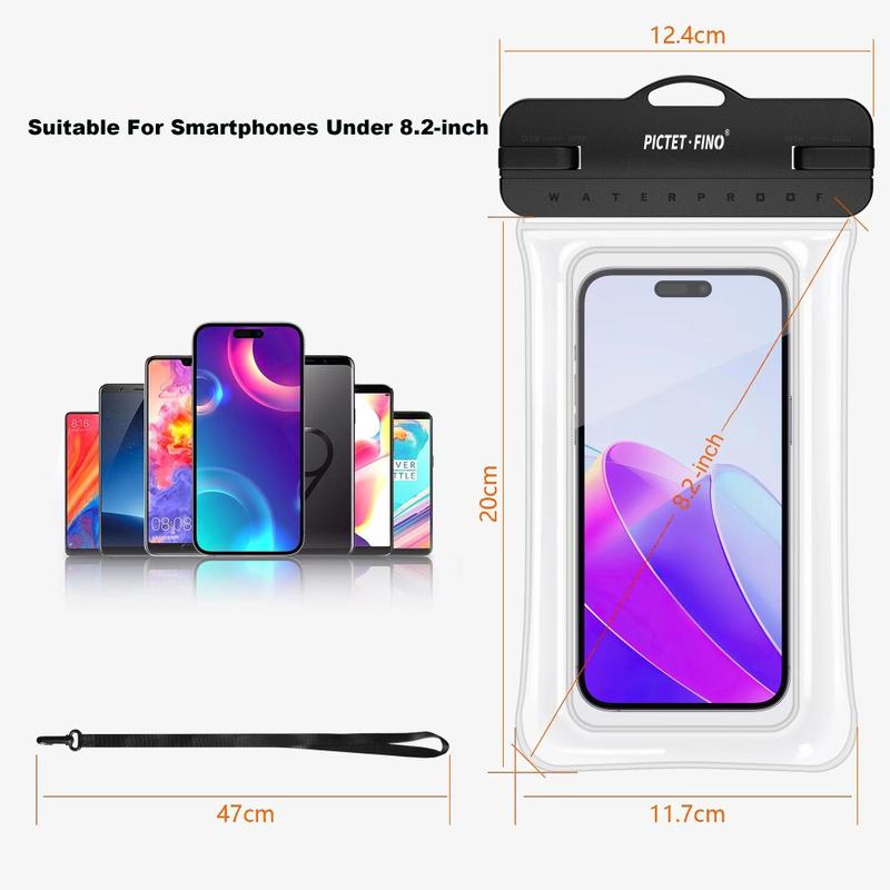 Pictet.Fino RH14 Airbag IPX8 Universal Wasserdichtes Gehäuse für Smartphones bis zu 8.2"