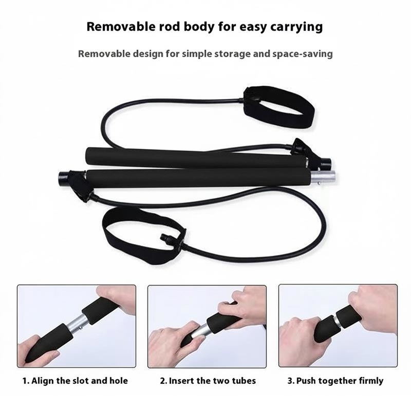 Pilates-Stange mit Widerstandsbändern - Abnehmbare Krafttrainings- und Dehnungsstange, 91cm, rutschfester NBR-Griff, drehbare Haken