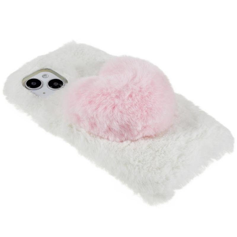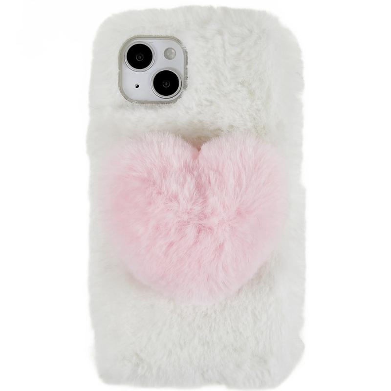 For iPhone 14 Plus Fluffy Plush Soft TPU Phone Case Cute Love Heart Design Anti-scratch Anti-drop Back Cover