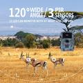 - Großer Erfassungsbereich von 120° - Drei PIR-Sensoren decken ein breites Sichtfeld ab und erfassen effektiv Tierbewegungen in großen Außenbereichen.