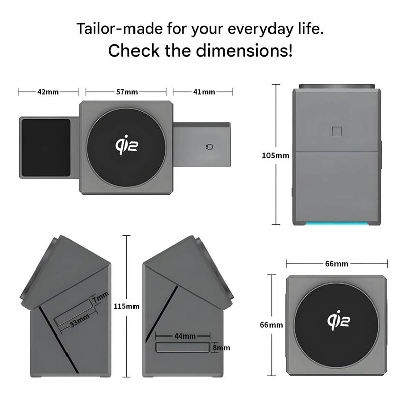 Es kombiniert schnelles Qi2-Laden mit einer durchdachten, drehbaren Struktur, die sich Ihrem Platzangebot und Ihrer Nutzung anpasst. Ein Ladegerät ersetzt mehrere Kabel und behält dabei ein elegantes, hochwertiges Aussehen.