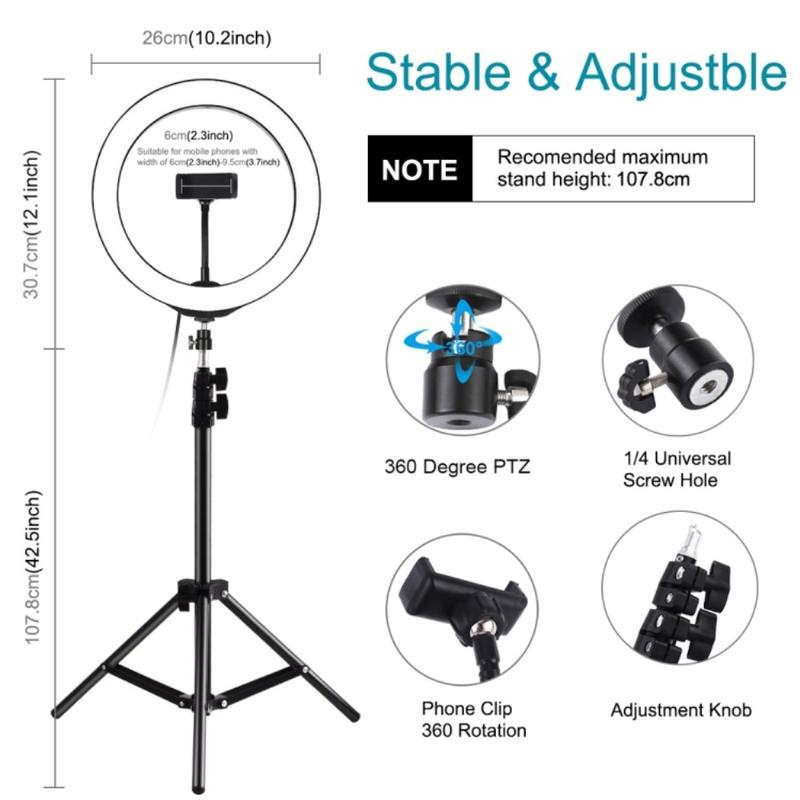 • PULUZ PKT3035 10.2" Ringlicht LED-Fülllicht + 1.1m Stativständer für Vlogging Live Broadcast