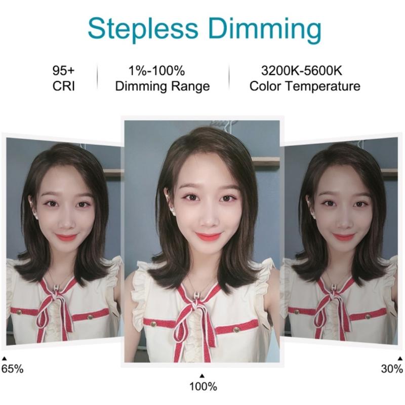 3 Farben Beleuchtungsmodus einstellbare Helligkeit für Ihre Wahl, können Sie die Farbe und Helligkeit sehr leicht einstellen, perfekte Helligkeit kann ohne zusätzliche bunte Filter zu installieren erreicht werden. Drei Farben von weichen natürliches Licht beleuchten Ihre Schönheit in verschiedenen Gelegenheiten