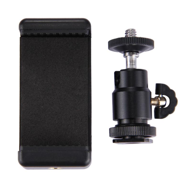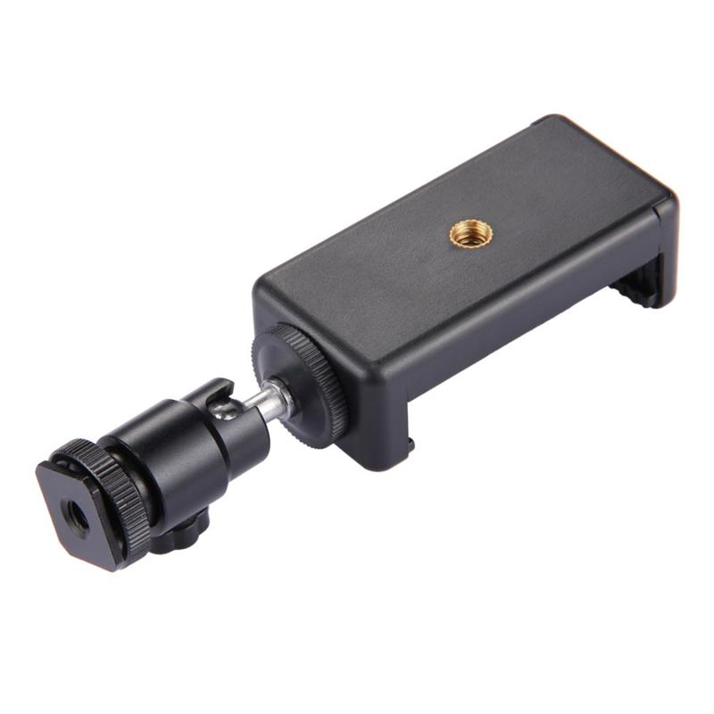 • Puluz PU214 1/4" Blitzschuh-Stativkopf + Stativklemme für Smartphones (Klemmenbreite: 6-7,6 cm)