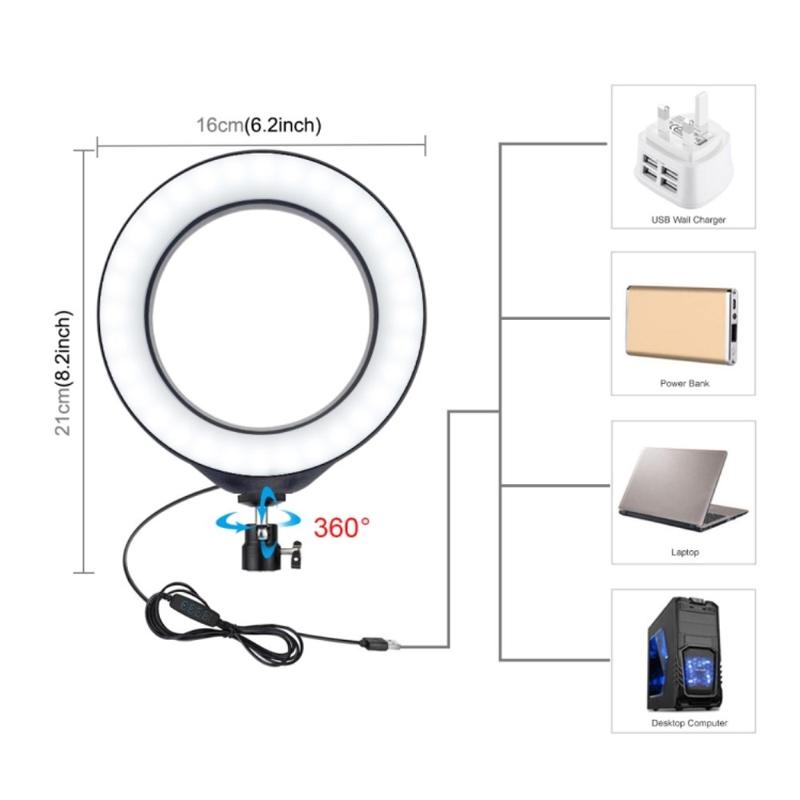 Die USB-Anschlüsse können mit mehreren Geräten verwendet werden, wie z. B. Computer-Host, Laptop, mobile Macht und USB-Ladegerät anschließen. Sie werden in der Lage sein, LED-Ringlicht jederzeit frei zu genießen
