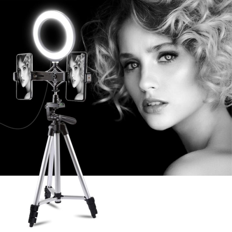 PULUZ Stativhalterung + Live Broadcast Dual Phone Bracket + 6.2" 16cm LED Ring Vlogging Video Light Kits