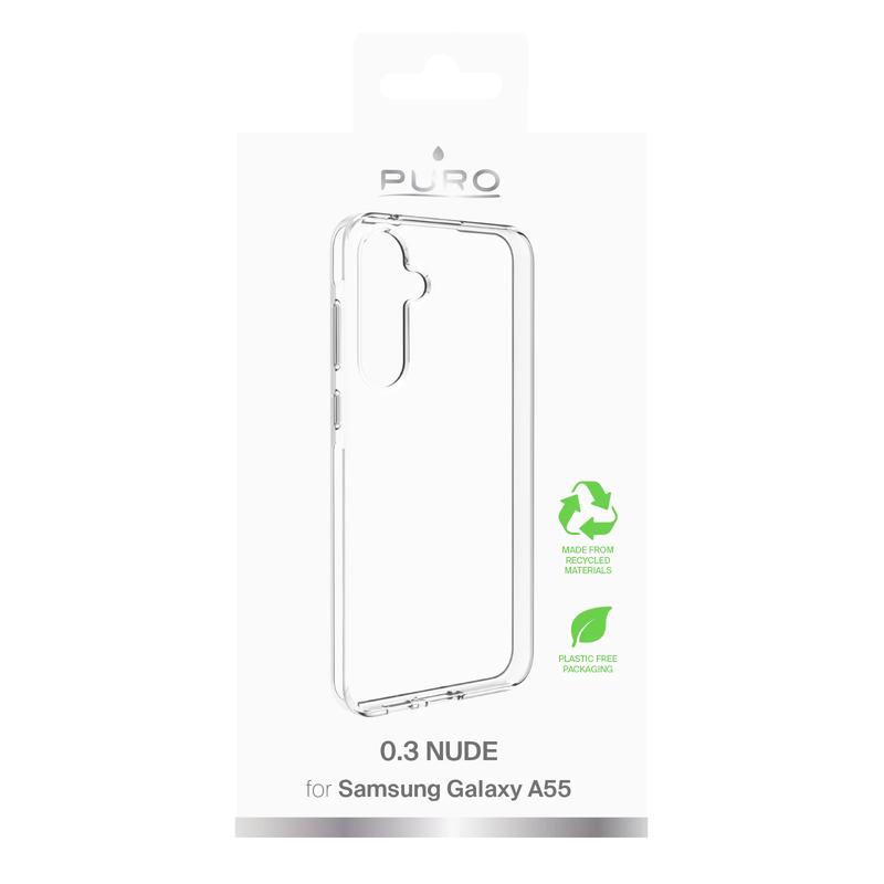 Das 0.3 Nude Cover von Puro schützt das zarte Finish Ihres Samsung Galaxy A55.