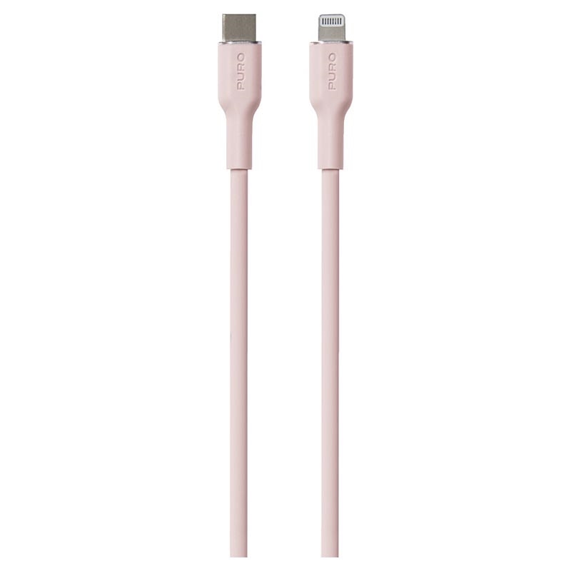Soft-Kabel mit USB-C- und Lightning-Anschluss aus Soft-Touch-Silikon in zartrosa.