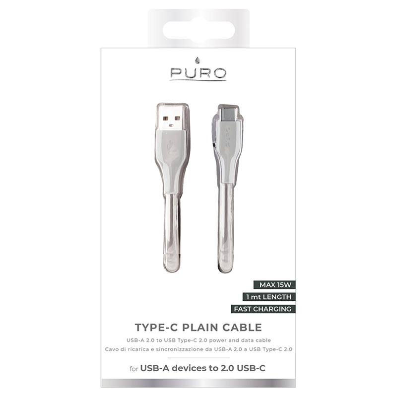 Puro Plain USB-A/USB-C Kabel - 1m, 15W - Weiß