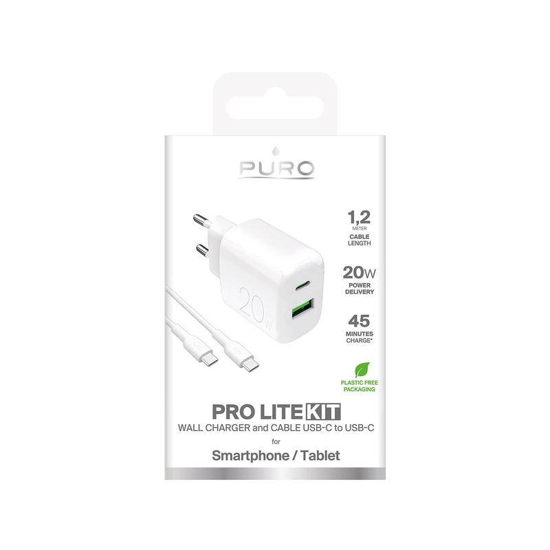 Puro Prolite 20W Dual-Port-Ladegerät mit USB-C-Kabel - Vielseitiges Aufladen für alle Ihre Geräte
