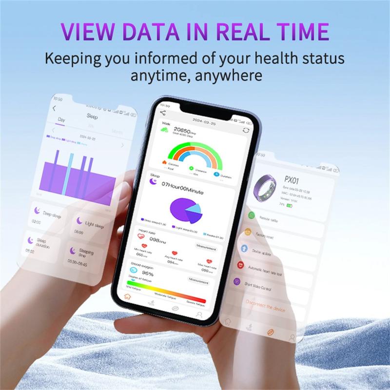 Übernehmen Sie die Kontrolle über Ihr Wohlbefinden mit dem PX01 Smart Ring - einem eleganten, kompakten und intelligenten Gesundheitsbegleiter!