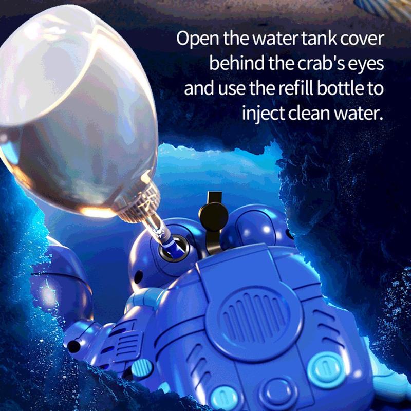 Q227 Ferngesteuerter Mecha-Krabbenroboter für Kinder - 2,4-GHz-RC-Spielzeug mit Seifenblasen und Wassersprühfunktion, LED-Lichtern, Musik und 360°-Drehung