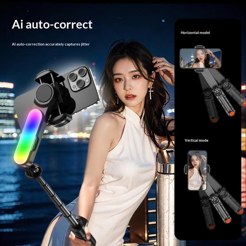 Erstellen Sie stabilere und flexiblere Smartphone-Inhalte mit dem Q34 AI Anti-Verwacklungs-Selfie-Stick-Gimbal-Stabilisator. Dieses kompakte Zubehör wurde für Live-Streaming, Selfies, Videoaufnahmen, Videoanrufe und die tägliche Erstellung von Inhalten entwickelt und vereint einen einachsigen Stabilisator, einen ausziehbaren Selfie-Stick, einen Stativfuß, ein RGB-Einstelllicht und eine drahtlose Fernbedienung in einem tragbaren Design. Mit einem Auszugbereich von 16,8 cm bis 71 cm bietet es Ihnen mehr Freiheit bei der Anpassung von Bildausschnitt und Aufnahmeabstand an unterschiedliche Szenen.