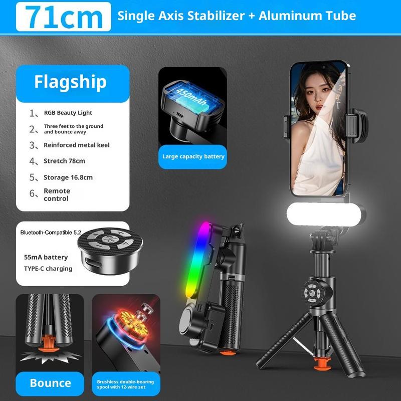 Q34 AI Anti-Shake Selfie-Stick mit Gimbal-Stabilisator - 71 cm ausziehbarer Handyhalter mit RGB-Schönheitslicht und Fernbedienung