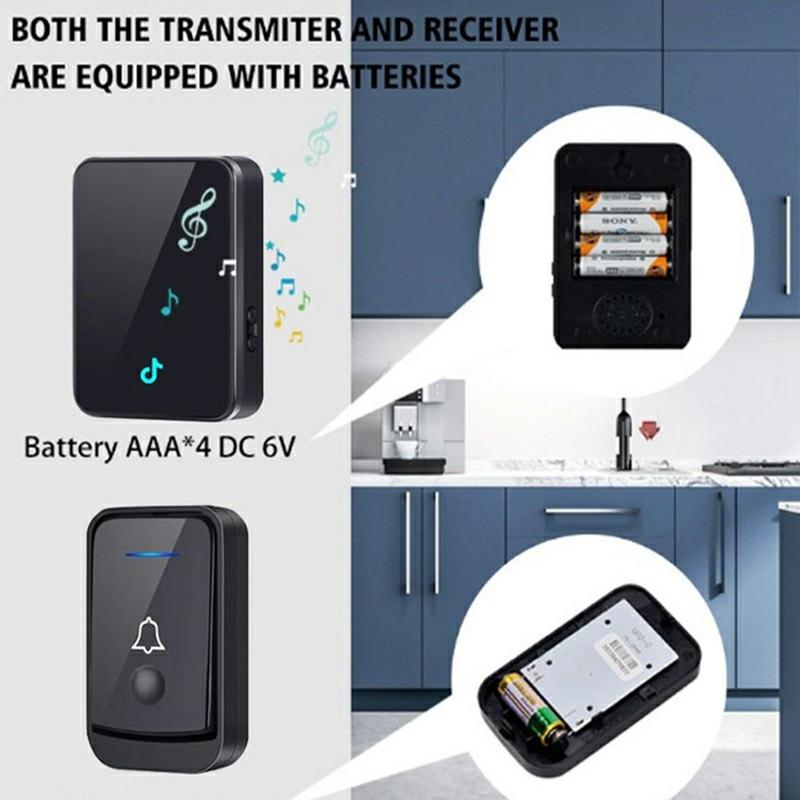 • Q502 Funk-Türklingel-Set mit 2 Sendern, 1 Empfänger - 433 MHz Türklingel, 45 Klingeltöne, wasserdicht (IP44), Reichweite 150-200 m